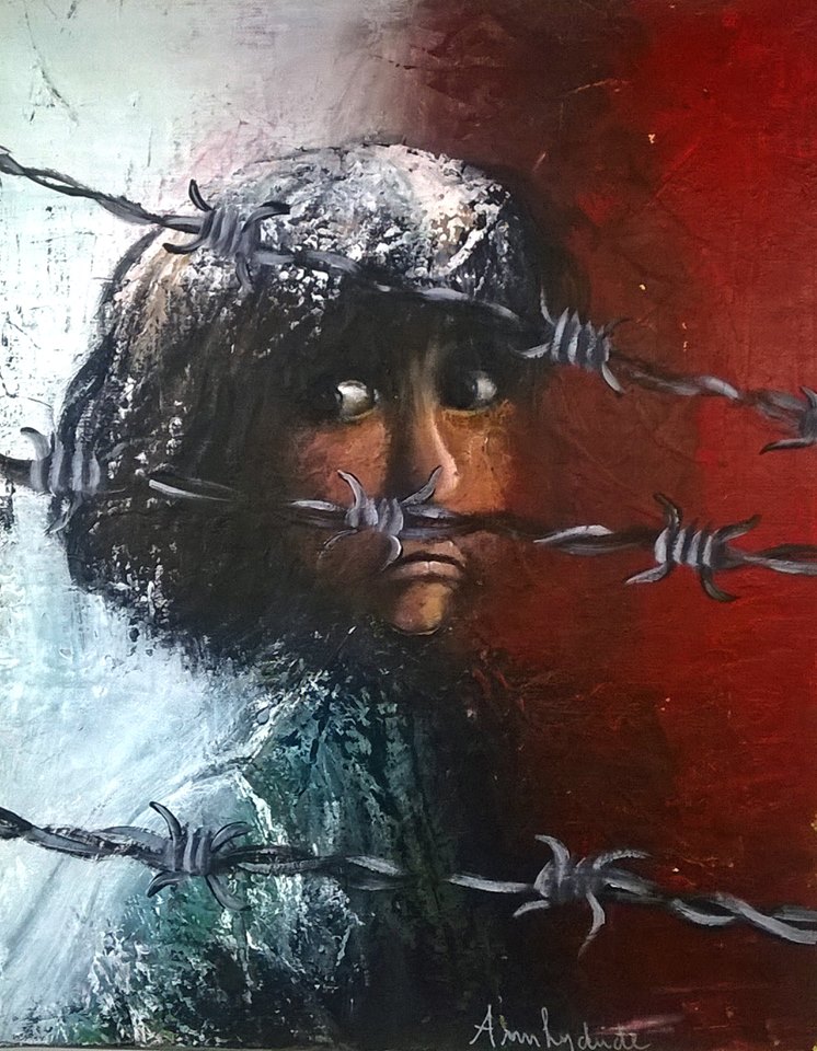 De tous temps l'humain a connu des heurs et des malheurs. Les êtres que j'ai choisi de peindre sont ceux qui subissent guerres, famine, absence de logement et de travail, vieillesse difficile après une vie de dur labeur... Manière de dénoncer des choix politiques et sociaux.
